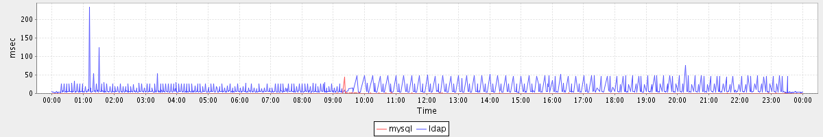 avg(mysql) = 0.37 avg(ldap) = 8.02