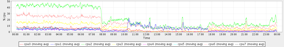 avg(cpu0) = 0.35 avg(cpu1) = 0.01 avg(cpu2) = 0.10 avg(cpu3) = 0.02 avg(cpu4) = 0.00 avg(cpu5) = 0.00 avg(cpu6) = 0.05 avg(cpu7) = 0.00