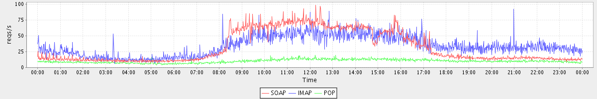 Host zm06.stanford.edu: Mailboxd: Request Rate by Client Protocol