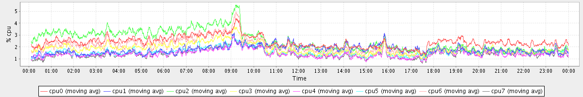 avg(cpu0) = 5.92 avg(cpu1) = 0.30 avg(cpu2) = 0.43 avg(cpu3) = 0.33 avg(cpu4) = 0.26 avg(cpu5) = 0.28 avg(cpu6) = 0.35 avg(cpu7) = 0.27