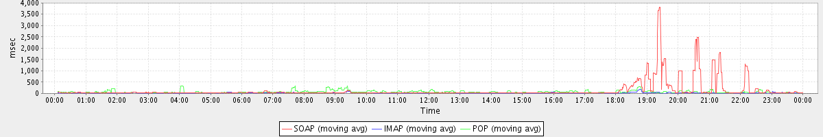 Host zm07.stanford.edu: Mailboxd: Response Time by Client Protocol