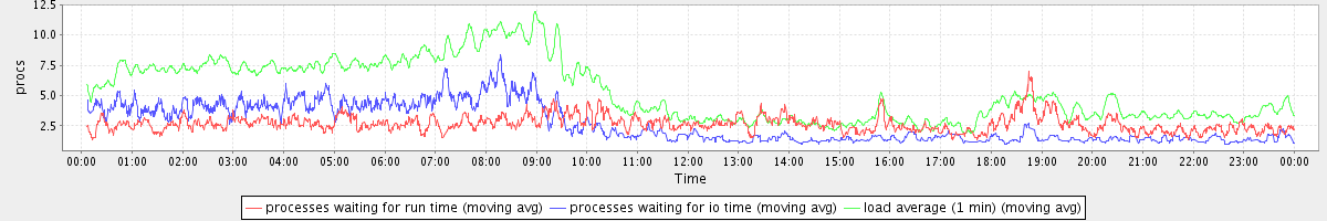 avg(processes waiting for run time) = 2.30 avg(processes waiting for io time) = 2.19 avg(load average (1 min)) = 5.33