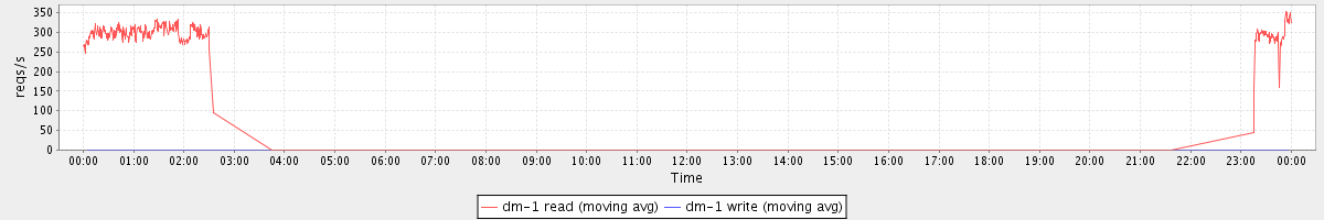 avg(dm-1 read) = 748.01 avg(dm-1 write) = 0.60