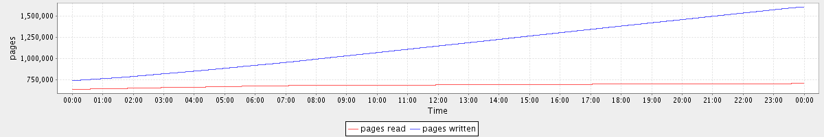 avg(pages read) = 684576.01 avg(pages written) = 1154922.59