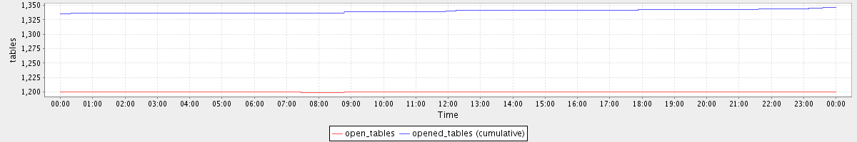 avg(open_tables) = 1199.94 avg(opened_tables (cumulative)) = 1339.82