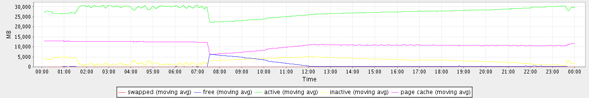 avg(swapped) = 0.23 avg(free) = 811.88 avg(active) = 27708.20 avg(inactive) = 2943.58 avg(page cache) = 10907.43