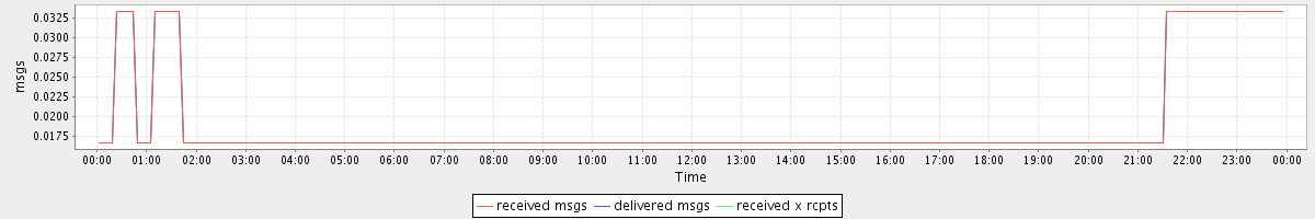 avg(received msgs) = 0.01 avg(delivered msgs) = 0.01 avg(received x rcpts) = 0.01
