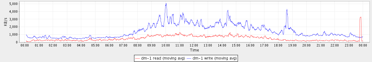 avg(dm-0 read) = 3494.12 avg(dm-0 write) = 407.58