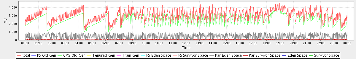 avg(total) = 3057.69 avg(PS Old Gen) = 0.00 avg(CMS Old Gen) = 2486.41 avg(Tenured Gen) = 0.00 avg(Train Gen) = 0.00 avg(PS Eden Space) = 0.00 avg(PS Survivor Space) = 0.00 avg(Par Eden Space) = 481.80 avg(Par Survivor Space) = 89.48 avg(Eden Space) = 0.00 avg(Survivor Space) = 0.00
