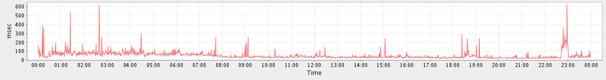 avg(DeleteAccountRequest) = 12996.86 avg(SyncGalRequest) = 4962.71 avg(FolderActionRequest.delete) = 3124.75 avg(SendInviteReplyRequest) = 1051.19 avg(RemoveAttachmentsRequest) = 1035.20 avg(ApplyFilterRulesRequest) = 120464.00 avg(ConvActionRequest.delete) = 988.81 avg(FolderActionRequest.empty) = 6257.07 avg(BackupRequest) = 1260.50 avg(GetQuotaUsageRequest) = 1090.00