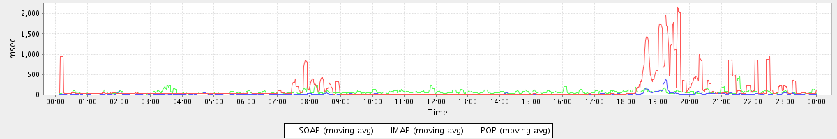 Host zm08.stanford.edu: Mailboxd: Response Time by Client Protocol