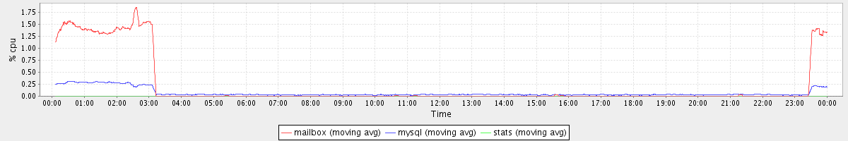avg(mailbox) = 0.22 avg(mysql) = 0.07 avg(stats) = 0.00