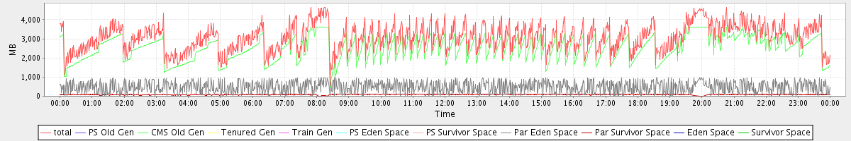 avg(total) = 3074.94 avg(PS Old Gen) = 0.00 avg(CMS Old Gen) = 2501.25 avg(Tenured Gen) = 0.00 avg(Train Gen) = 0.00 avg(PS Eden Space) = 0.00 avg(PS Survivor Space) = 0.00 avg(Par Eden Space) = 487.11 avg(Par Survivor Space) = 86.58 avg(Eden Space) = 0.00 avg(Survivor Space) = 0.00