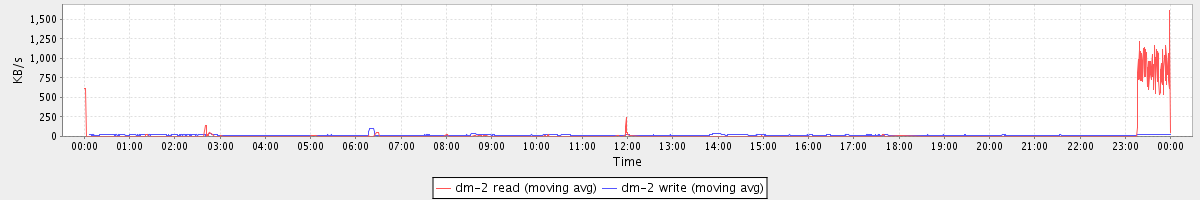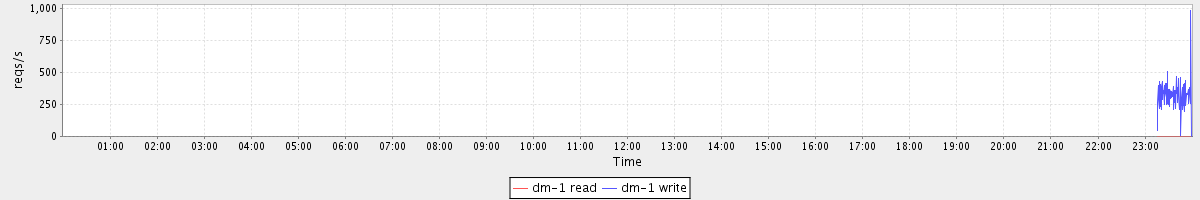 avg(dm-1 read) = 0.08 avg(dm-1 write) = 38.82