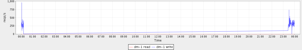avg(dm-1 read) = 0.03 avg(dm-1 write) = 10.05