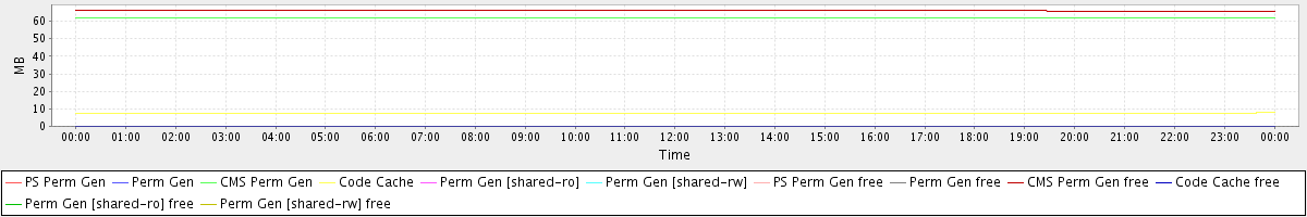 avg(PS Perm Gen) = 0.00 avg(Perm Gen) = 0.00 avg(CMS Perm Gen) = 62.05 avg(Code Cache) = 7.44 avg(Perm Gen [shared-ro]) = 0.00 avg(Perm Gen [shared-rw]) = 0.00 avg(PS Perm Gen free) = 0.00 avg(Perm Gen free) = 0.00 avg(CMS Perm Gen free) = 65.95 avg(Code Cache free) = 0.12 avg(Perm Gen [shared-ro] free) = 0.00 avg(Perm Gen [shared-rw] free) = 0.00