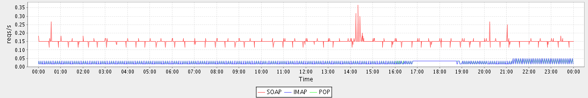 Host zm02-int.stanford.edu: Mailboxd: Request Rate by Client Protocol