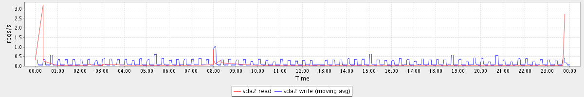 avg(sda2 read) = 0.05 avg(sda2 write) = 2.65