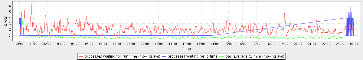 avg(processes waiting for run time) = 0.69 avg(processes waiting for io time) = 0.10 avg(load average (1 min)) = 0.74