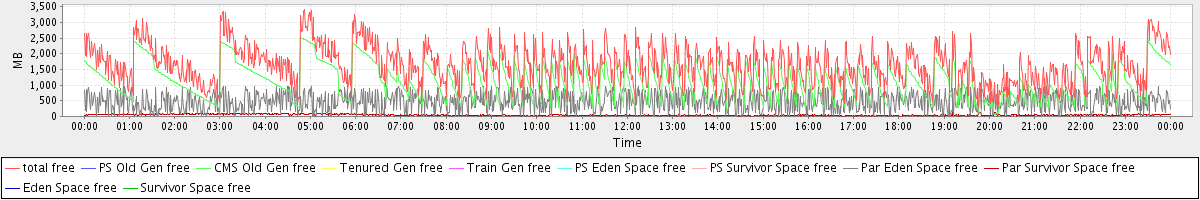 avg(total free) = 1647.24 avg(PS Old Gen free) = 0.00 avg(CMS Old Gen free) = 1121.13 avg(Tenured Gen free) = 0.00 avg(Train Gen free) = 0.00 avg(PS Eden Space free) = 0.00 avg(PS Survivor Space free) = 0.00 avg(Par Eden Space free) = 481.80 avg(Par Survivor Space free) = 44.31 avg(Eden Space free) = 0.00 avg(Survivor Space free) = 0.00