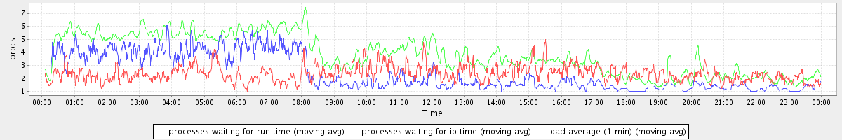 avg(processes waiting for run time) = 1.64 avg(processes waiting for io time) = 1.75 avg(load average (1 min)) = 3.82
