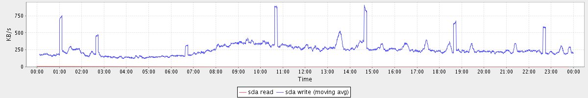 avg(sda read) = 0.00 avg(sda write) = 254.63