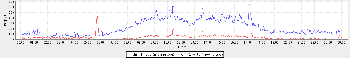 avg(dm-1 read) = 481.02 avg(dm-1 write) = 1248.95