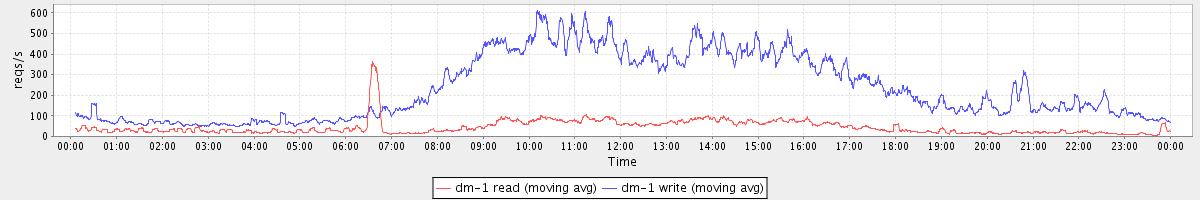 avg(dm-1 read) = 43.90 avg(dm-1 write) = 231.46