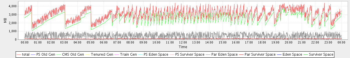 avg(total) = 3062.04 avg(PS Old Gen) = 0.00 avg(CMS Old Gen) = 2483.18 avg(Tenured Gen) = 0.00 avg(Train Gen) = 0.00 avg(PS Eden Space) = 0.00 avg(PS Survivor Space) = 0.00 avg(Par Eden Space) = 487.49 avg(Par Survivor Space) = 91.36 avg(Eden Space) = 0.00 avg(Survivor Space) = 0.00