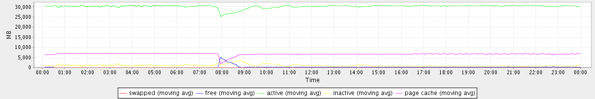 avg(swapped) = 0.23 avg(free) = 235.29 avg(active) = 30226.34 avg(inactive) = 1002.11 avg(page cache) = 6608.05