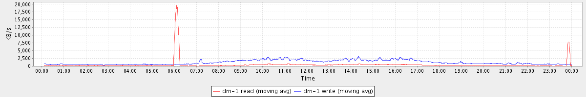 avg(dm-1 read) = 38.36 avg(dm-1 write) = 224.44