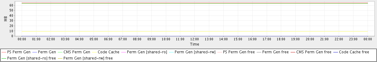 avg(PS Perm Gen) = 0.00 avg(Perm Gen) = 0.00 avg(CMS Perm Gen) = 63.29 avg(Code Cache) = 8.84 avg(Perm Gen [shared-ro]) = 0.00 avg(Perm Gen [shared-rw]) = 0.00 avg(PS Perm Gen free) = 0.00 avg(Perm Gen free) = 0.00 avg(CMS Perm Gen free) = 64.71 avg(Code Cache free) = 0.12 avg(Perm Gen [shared-ro] free) = 0.00 avg(Perm Gen [shared-rw] free) = 0.00