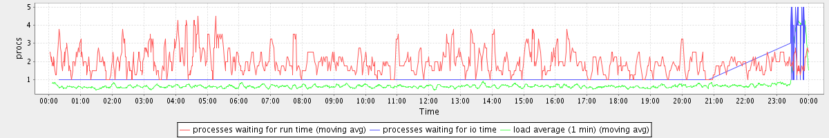 avg(processes waiting for run time) = 0.66 avg(processes waiting for io time) = 0.07 avg(load average (1 min)) = 0.69