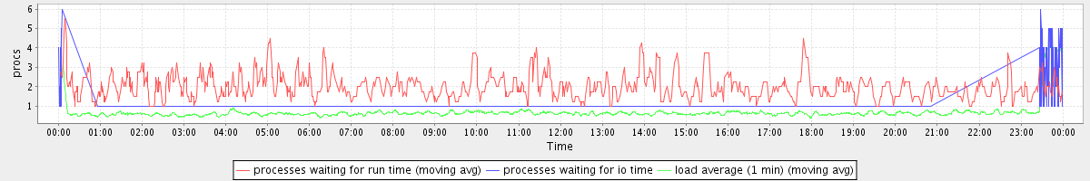 avg(processes waiting for run time) = 0.68 avg(processes waiting for io time) = 0.08 avg(load average (1 min)) = 0.72