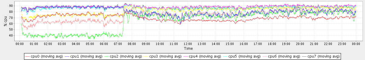 avg(cpu0) = 69.88 avg(cpu1) = 80.78 avg(cpu2) = 64.73 avg(cpu3) = 81.78 avg(cpu4) = 88.67 avg(cpu5) = 86.43 avg(cpu6) = 74.05 avg(cpu7) = 87.43
