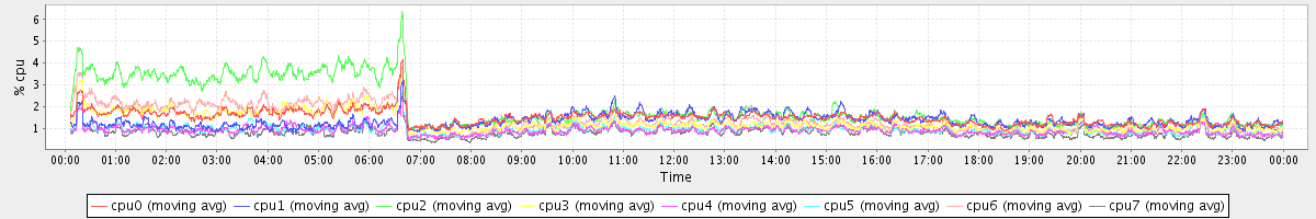 avg(cpu0) = 0.17 avg(cpu1) = 0.03 avg(cpu2) = 0.10 avg(cpu3) = 0.02 avg(cpu4) = 0.00 avg(cpu5) = 0.00 avg(cpu6) = 0.06 avg(cpu7) = 0.00