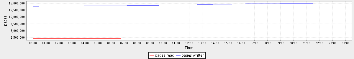 avg(pages read) = 2269767.60 avg(pages written) = 14478661.74