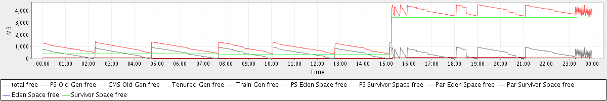 avg(total free) = 2059.23 avg(PS Old Gen free) = 0.00 avg(CMS Old Gen free) = 1516.58 avg(Tenured Gen free) = 0.00 avg(Train Gen free) = 0.00 avg(PS Eden Space free) = 0.00 avg(PS Survivor Space free) = 0.00 avg(Par Eden Space free) = 473.07 avg(Par Survivor Space free) = 69.57 avg(Eden Space free) = 0.00 avg(Survivor Space free) = 0.00