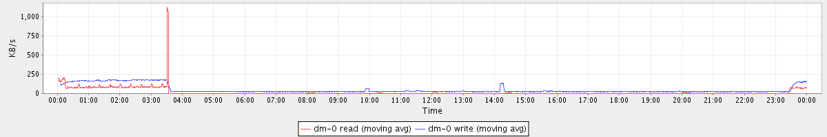 avg(dm-0 read) = 1.28 avg(dm-0 write) = 9.99