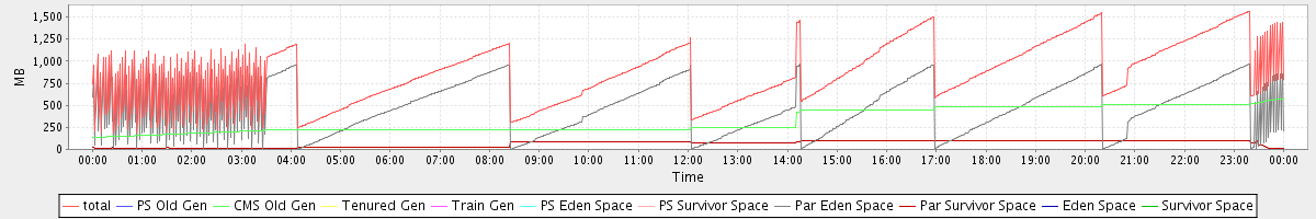 avg(total) = 863.17 avg(PS Old Gen) = 0.00 avg(CMS Old Gen) = 323.74 avg(Tenured Gen) = 0.00 avg(Train Gen) = 0.00 avg(PS Eden Space) = 0.00 avg(PS Survivor Space) = 0.00 avg(Par Eden Space) = 474.63 avg(Par Survivor Space) = 64.81 avg(Eden Space) = 0.00 avg(Survivor Space) = 0.00