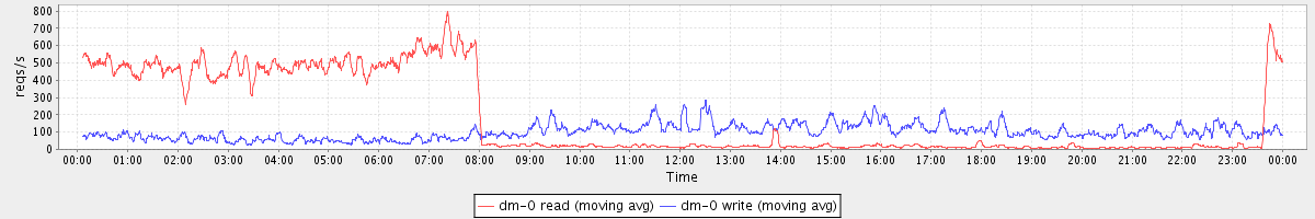 avg(dm-0 read) = 3438.04 avg(dm-0 write) = 401.81