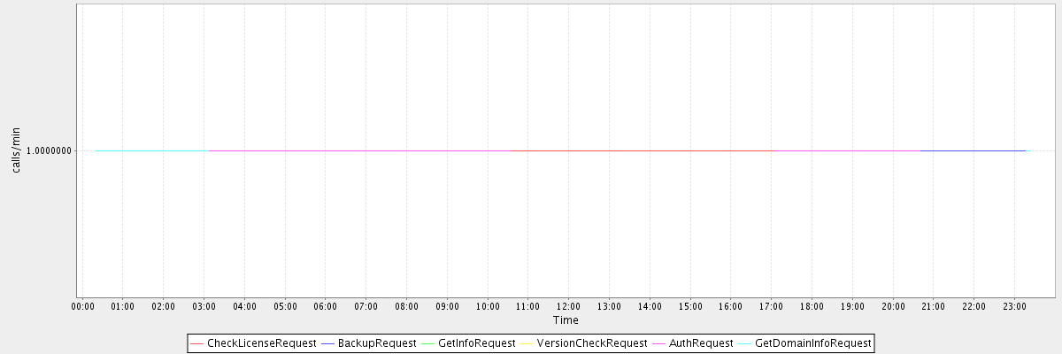 max(CheckLicenseRequest) = 1.00 max(BackupRequest) = 1.00 max(GetInfoRequest) = 1.00 max(VersionCheckRequest) = 1.00 max(AuthRequest) = 1.00 max(GetDomainInfoRequest) = 1.00