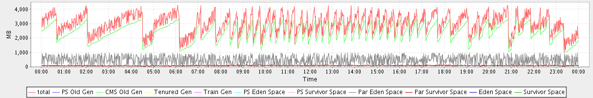 avg(total) = 2989.79 avg(PS Old Gen) = 0.00 avg(CMS Old Gen) = 2417.06 avg(Tenured Gen) = 0.00 avg(Train Gen) = 0.00 avg(PS Eden Space) = 0.00 avg(PS Survivor Space) = 0.00 avg(Par Eden Space) = 483.76 avg(Par Survivor Space) = 88.97 avg(Eden Space) = 0.00 avg(Survivor Space) = 0.00