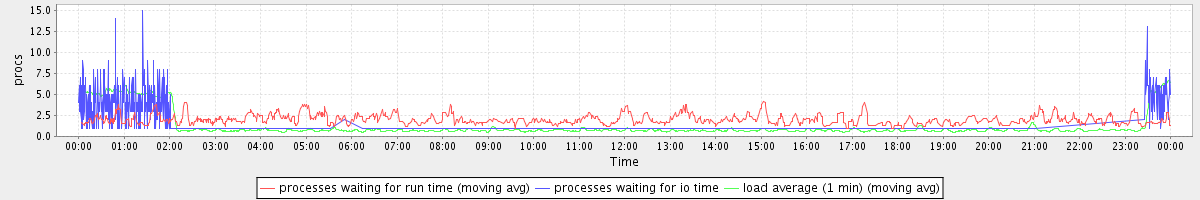 avg(processes waiting for run time) = 0.88 avg(processes waiting for io time) = 0.47 avg(load average (1 min)) = 1.23