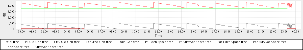 avg(total free) = 4092.16 avg(PS Old Gen free) = 0.00 avg(CMS Old Gen free) = 3547.86 avg(Tenured Gen free) = 0.00 avg(Train Gen free) = 0.00 avg(PS Eden Space free) = 0.00 avg(PS Survivor Space free) = 0.00 avg(Par Eden Space free) = 487.64 avg(Par Survivor Space free) = 56.66 avg(Eden Space free) = 0.00 avg(Survivor Space free) = 0.00
