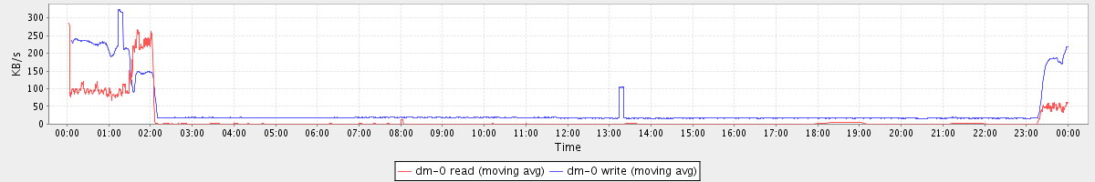 avg(dm-1 read) = 38.60 avg(dm-1 write) = 0.17
