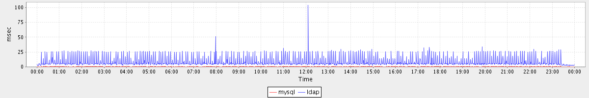 avg(mysql) = 0.27 avg(ldap) = 8.35