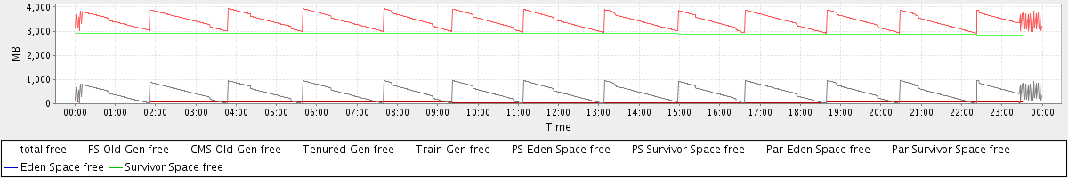 avg(total free) = 3431.30 avg(PS Old Gen free) = 0.00 avg(CMS Old Gen free) = 2893.24 avg(Tenured Gen free) = 0.00 avg(Train Gen free) = 0.00 avg(PS Eden Space free) = 0.00 avg(PS Survivor Space free) = 0.00 avg(Par Eden Space free) = 475.10 avg(Par Survivor Space free) = 62.96 avg(Eden Space free) = 0.00 avg(Survivor Space free) = 0.00