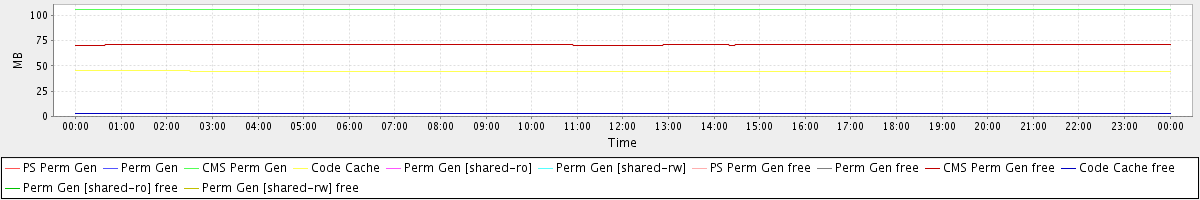 avg(PS Perm Gen) = 0.00 avg(Perm Gen) = 0.00 avg(CMS Perm Gen) = 105.81 avg(Code Cache) = 44.96 avg(Perm Gen [shared-ro]) = 0.00 avg(Perm Gen [shared-rw]) = 0.00 avg(PS Perm Gen free) = 0.00 avg(Perm Gen free) = 0.00 avg(CMS Perm Gen free) = 70.88 avg(Code Cache free) = 3.04 avg(Perm Gen [shared-ro] free) = 0.00 avg(Perm Gen [shared-rw] free) = 0.00