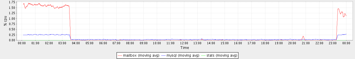 avg(mailbox) = 0.27 avg(mysql) = 0.07 avg(stats) = 0.00